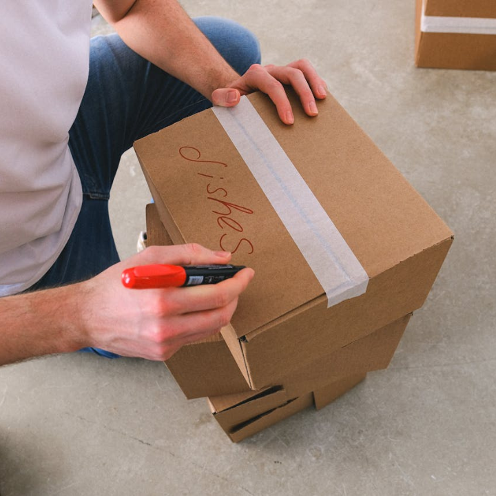 Envelopes, packing tape, boxes, shipping labels.