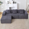 This modern modular sofa set features a sleek and minimalist design, perfect for contemporary living spaces. Crafted with a sturdy frame and upholstered in high-quality fabric, it offers both comfort and durability. The modular design allows for versatile configurations, making it suitable for various room layouts. Additionally, the set includes a matching ottoman, providing extra seating or a convenient footrest. Whether you’re furnishing a small apartment or a spacious home, this sofa set combines style and functionality to enhance your living area.