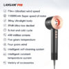 This high-speed hair dryer features a powerful 110,000 RPM brushless motor, delivering ultra-fast drying with wind speeds up to 62 m/s. Its lightweight design (approximately 345g) ensures comfortable handling, while the integrated negative ion technology emits 200 million negative ions to reduce frizz and enhance hair smoothness. The dryer offers intelligent temperature control with multiple heat and speed settings, catering to various styling needs. An LED temperature indicator provides real-time feedback, and the low-noise operation ensures a pleasant user experience. Ideal for both professional salons and home use, this hair dryer combines efficiency, safety, and versatility.